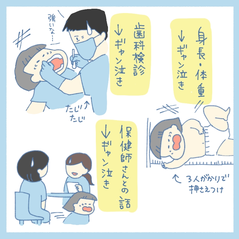 最初が歯科検診で、もうそれでギャン泣き。