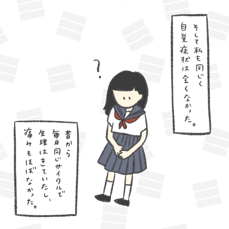 量が多いとか少ないとか、痛みが重いとか軽いとか